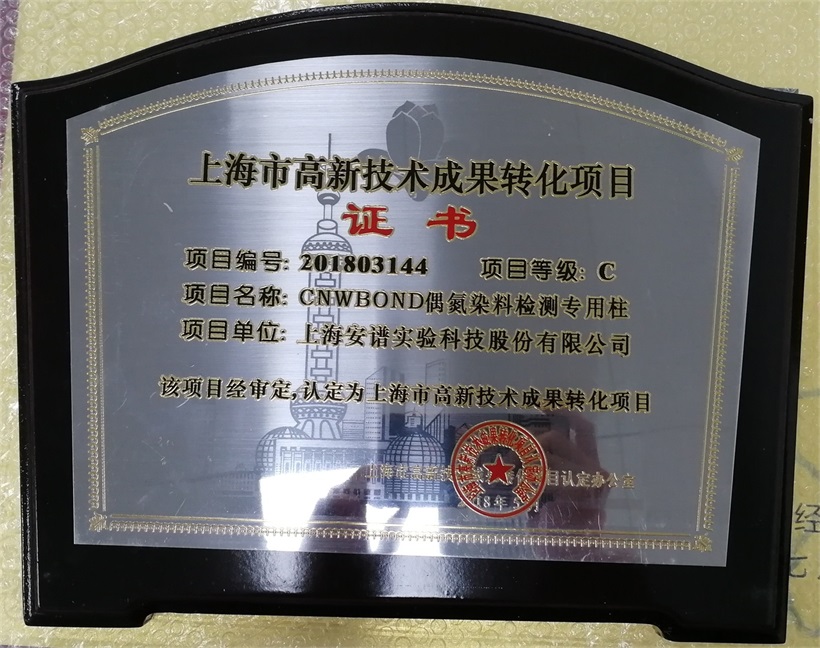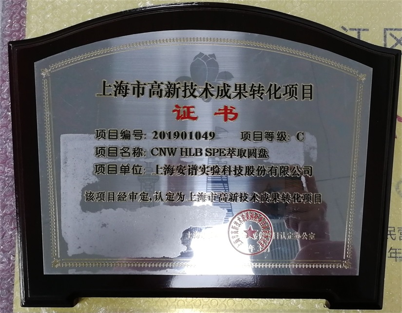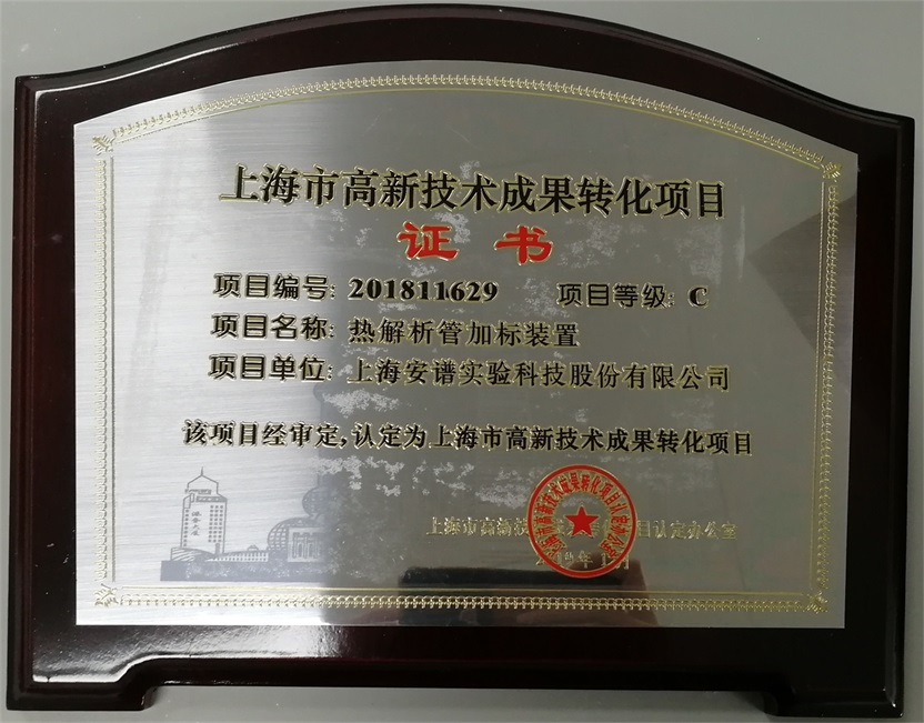 上海市高新技术成果转化项目证书