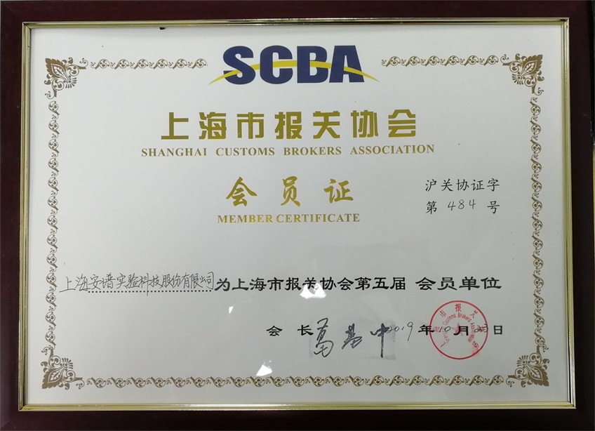 上海市报关协会第五届会员单位会员证